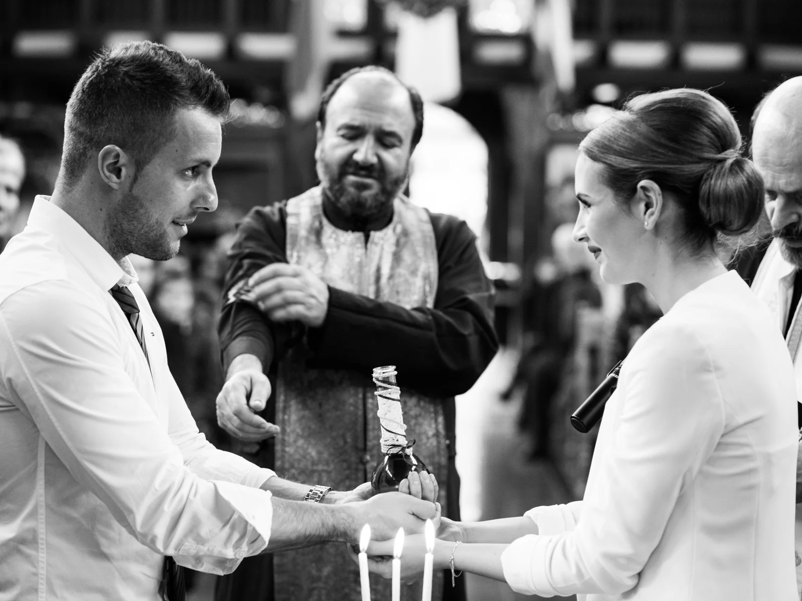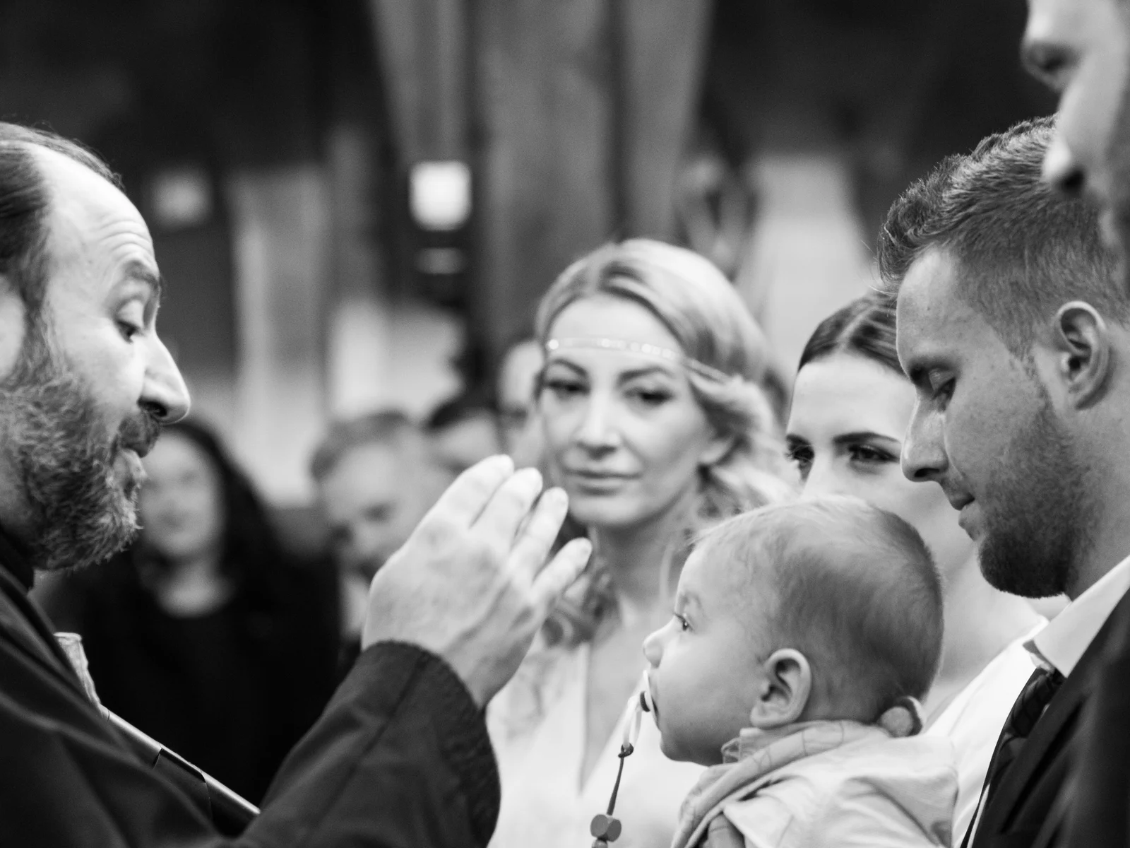 Das warme Licht der Kerzen während der Ölung. Die Stille, kurz bevor das Kind ins Taufbecken gehoben wird. Der Moment, wenn das Myron aufgetragen wird und die Paten zum ersten Mal ihr Patenkind halten. Das sind die Bilder, die in zehn Jahren noch erzählen, wie sich dieser Tag angefühlt hat.